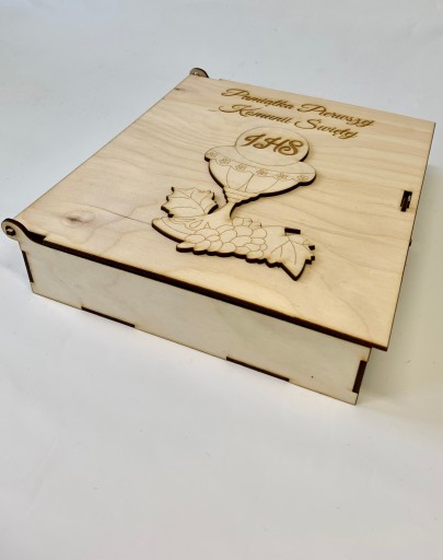 Drewniane pudełko sprawia, że podarowana z okazji Pierwszej Komunii Świętej Biblia jest pięknie wyeksponowana. Dzięki personalizacji we wnętrzu pudełka, jest ona niezwykłą pamiątką tego wyjątkowego dnia na długie lata.