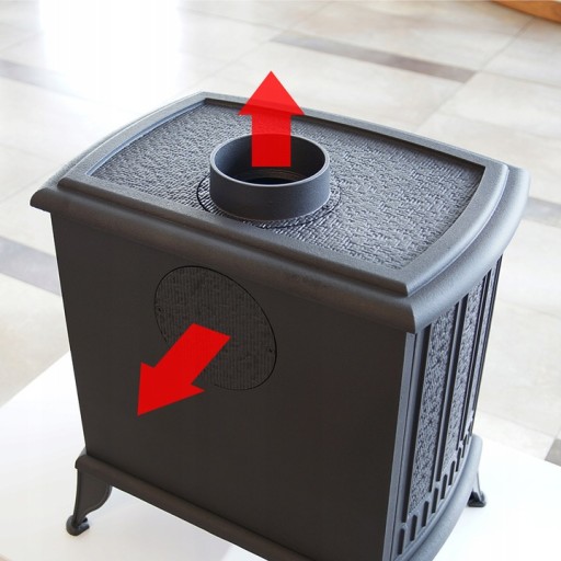 - Możliwość zamontowania wylotu spalin z tyłu lub na górze pieca.