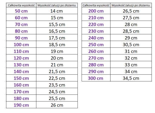 ❗ WAŻNE ❗ Poniżej znajduje się tabela pokazująca ile miejsca zajmie żaluzja po zwinięciu - prosimy o sprawdzenie czy po złożeniu żaluzji będzie możliwość otworzenia okna. Przy zamawianiu żaluzji prosimy o uwzględnienie tego wymiaru.