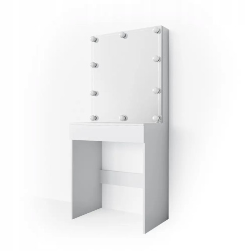 Toaletka kosmetyczna z kolekcji Melle z szfladą i uktyrą szafką z lustrem jest wykonana z wysokiej jakości materiałów.