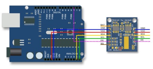 Moduł z zegarem czasu rzeczywistego i rezerwowym zasilaniem bateryjnym. Pozwala na odczyt czasu w postaci godziny, minuty i sekundy oraz daty: miesiąc dzień, rok. Komunikacja z modułem odbywa się po magistarli I2C. Dostępne jest również wyprowadzenie z sygnałem SQ -jest to wyjściem prostokątnego sygnału z wybraną częstotliwością (szczegóły opisu w dokumentacji)