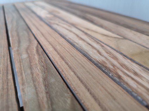 drewno tekowe, ładne wstawki na blacie prawdopodobnie palisander