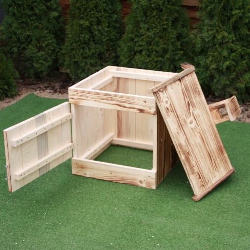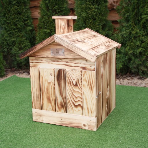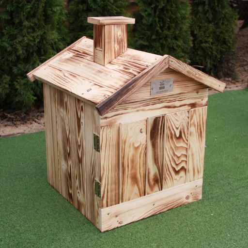 - KOMORA WĘDZARNICZA Z DASZKIEM wykonana z desek (ŚWIERK SKANDYNAWSKI) 20 [mm] (+/-2mm) o wymiarach 50x50x70[cm] z dachem i kominem