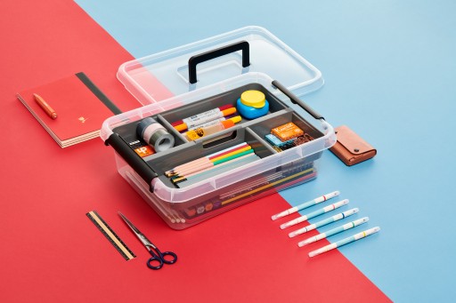 Modułowość pudeł zapewnia optymalne wykorzystanie przestrzeni. Praktyczne klipsy zapewniają bezpieczne przechowywanie, a ich specjalna konstrukcja pozwala na uchylenie pokrywy po otwarciu tylko jednego klipsa z dowolnej strony.