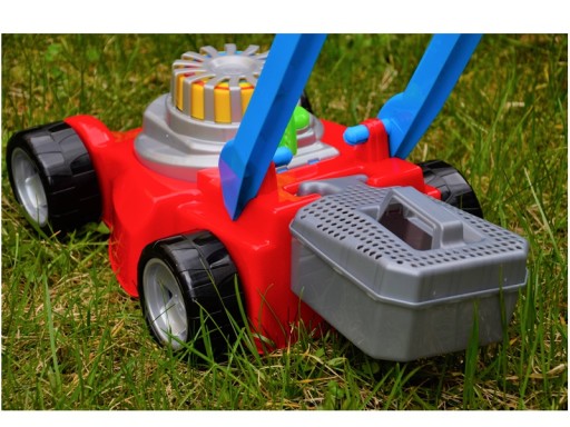Duża kosiarka do trawy dla dzieci z koszem produkt polski