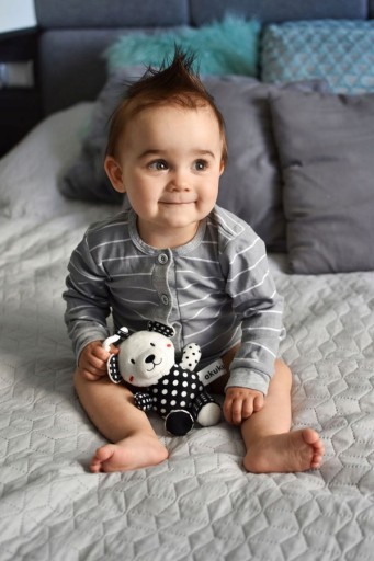 Czarno-białe kolory stymulują zmysł wzroku u niemowlaka, który jeszcze nie rozróżnia barw.