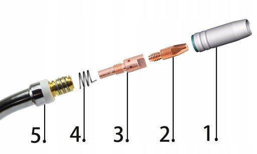 Zestaw podstawowych elementów niezbędnych do uzbrojenie każdego uchwytu spawalniczego MIG/MAG o standardzie MB 25