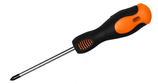 Wkrętak ręczny z grotem magnetycznym. Część robocza wkrętaka została wykonana ze stali chromowo-molibdenowej (Cr-Mo), dzięki temu są wytrzymalsze przy niższej masie własnej, zaś dodatek molibdenu zapobiega deformacjom oraz podwyższa ogólną odporność stali