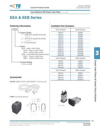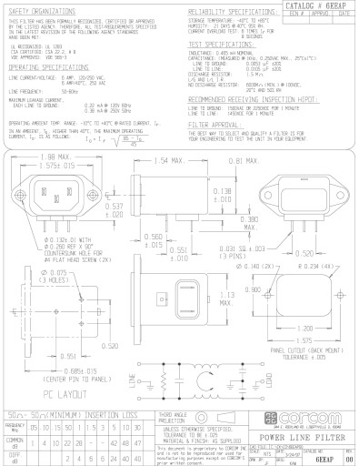ЭМИ ФИЛЬТР CORCOM 6EEAP РОЗЕТКА ДЛЯ МОНТАЖА НА ПЛАТУ