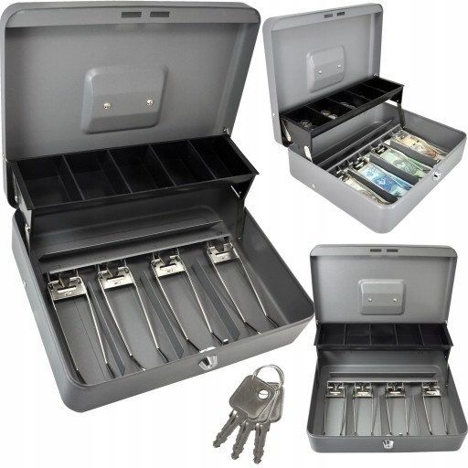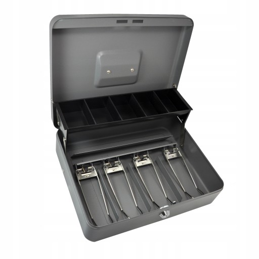 - Dodatkowo kaseta wyposażona jest w 5 przegródek na bilon. Możesz je wykorzystać również do segregacji kluczy czy paragonów.