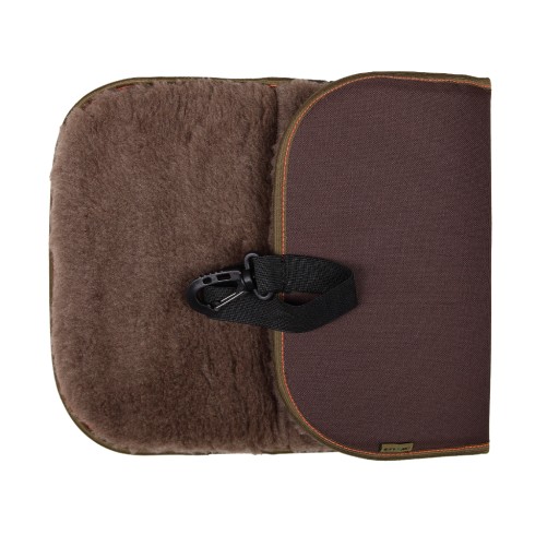 Myśliwskie siedzisko wykonane zostało z odpornego na przetarcia i wilgoć materiału codura w kolorze brązowym. Wypełnione zostało miękką pianką posiadającą właściwości termoizolacyjne. Wnętrze siedziska wykonano z miękkiego i ciepłego sztucznego futerka. Siedzisko składane jest na trzy części a guma przytrzymuje je przed rozłożeniem. Aby zabezpieczyć siedzisko przed zgubieniem, wyposażono je w szalkę umożliwiającą przypięcie go do paska. Dzięki temu myśliwy nie musi się martwić czy nie zapomnij zabrać siedziska z ambony.