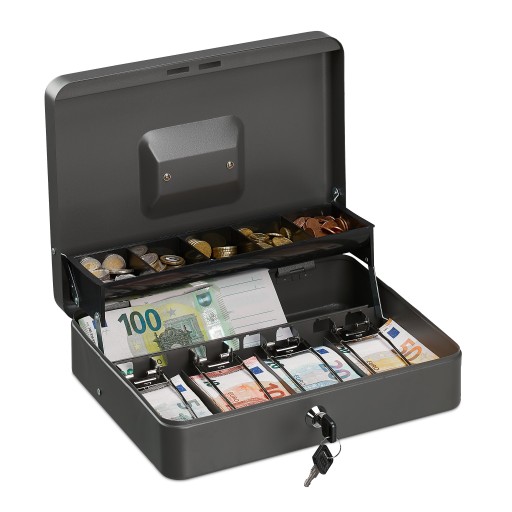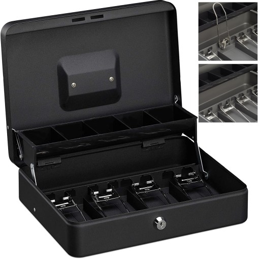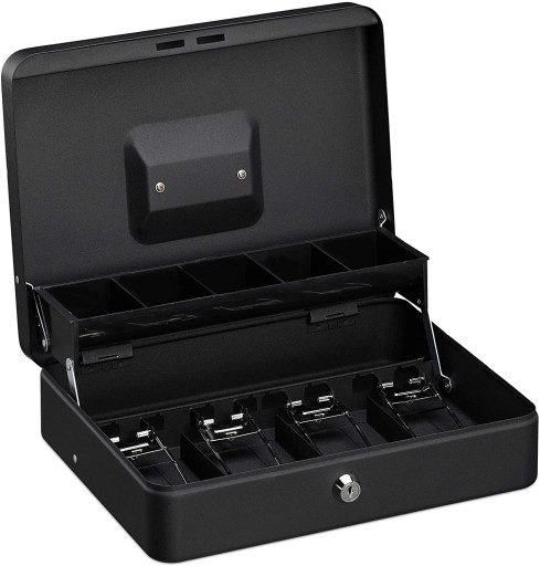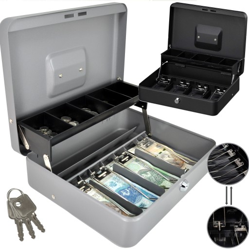 - Dodatkowo kaseta wyposażona jest w 5 przegródek na bilon. Możesz je wykorzystać również do segregacji kluczy czy paragonów.