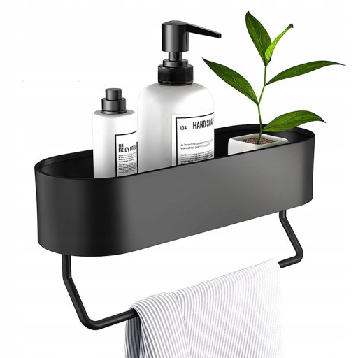 Półka prysznicowa bez wiercenia kosz prysznicowy Organizer bez paznokci samoprzylepna przestrzeń aluminiowa bez uszkodzeń mata do zawieszania na ścianie wykończenie do kuchni w łazience 30x12x5cm,czarny