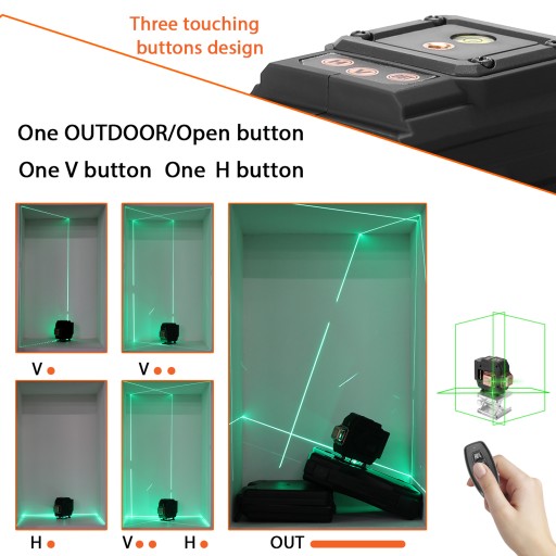 Wyposażony w funkcję kalibracji autotestu, automatyczne poziomowanie ≤4 °, ale jeśli kąt przekracza 4 °, światło lasera będzie nadal migać i wydawać dźwięk przypominający o zresetowaniu ich na płaskiej powierzchni.