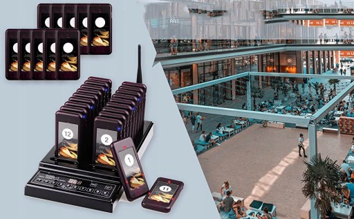 30 pager bezprzewodowego systemu połączeń jest lepiej przystosowany do dużej restauracji; dzięki systemowi kolejki do pagingu można obsługiwać 30 klientów jednocześnie zamiast 20 klientów