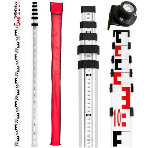 - Teleskopowa łata niwelacyjna przeznaczona do odczytów wysokości za pomocą niwelatorów optycznych jak również laserów obrotowych.
