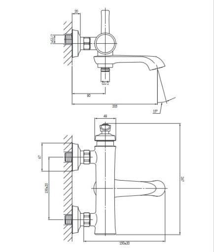 НАСТЕННЫЙ СМЕСИТЕЛЬ ДЛЯ ВАННЫ ARMANCE OMNIRES AM5230GL