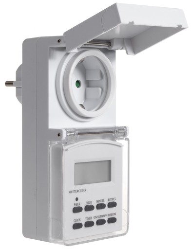 Cyfrowy wyłącznik czasowy, za pomocą którego możemy ustawić czas włączania i wyłączania się urządzeń elektrycznych. Może sterować np. pracą elektrycznego wyposażenia akwarium bądź terrarium, pracą ogrzewaczy wody, oświetlenia oraz wielu innych urządzeń. Timer ma 10 programów włącz/wyłącz, można go dowolnie zaprogramować np. na dany dzień lub cały tydzień. Możliwość pracy zarówno w cyklu 24 h jak i tygodniowym. Timer jest przeznaczony do użytku zarówno wewnętrznego jak i zewnętrznego.