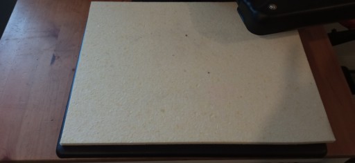 Zawarta w zestawie płyta dociskowa do transferu obrazów na t-shirty, pokryta jest teflonem co zapobiega przywieraniu materiału.