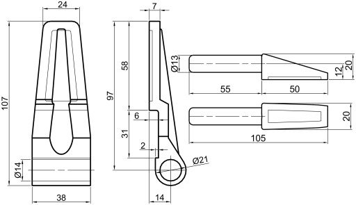 Stosowane w przyczepkach / burtach jako zawias umożliwiający otwieranie dołem burty lub nadstawki oraz szybki demontaż burty/nadstawki.