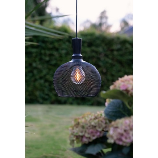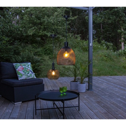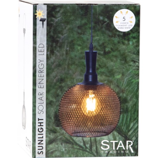 Lampa ogrodowa LED zasilana energią słoneczną z czarnego metalu. Ładna dekoracja do powieszenia w ogrodzie lub na balkonie