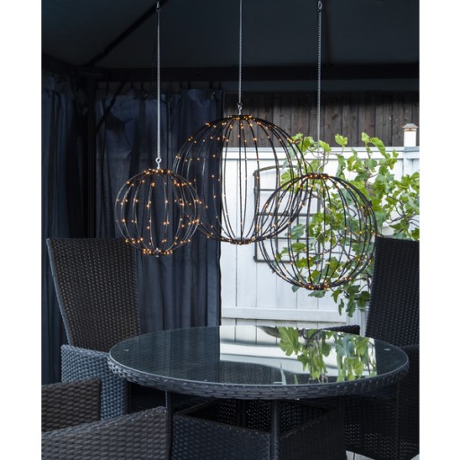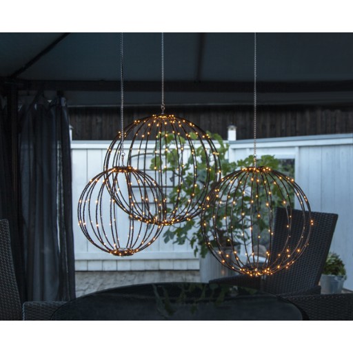 Dekoracja wisząca na patio lub ogród, nadaje się również do użytku w pomieszczeniach. Dołączony łańcuszek i haczyk. Rozmiar 30 cm z 96 białymi diodami LED