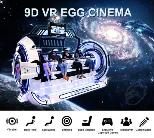 - Symulator wyposażony jest w platformę z czterema fotelami i cztery hełmy 9D nowej generacji wysokiej rozdzielczości 2K, na których wyświetlany film, bajka jest prawdziwie realnym światem którego możemy doświadczyć.