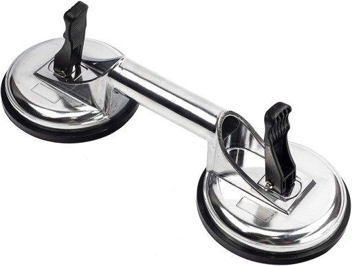 Uchwyt/przyssawka przeznaczona do przenoszenie elementów o płaskiej i gładkiej powierzchni takich jak np. szyby, okna, szyby samochodowe, arkusze blach, laminaty, płytki itp., których waga nie przekracza 100kg.