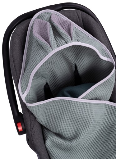 ➡️ Miękki, delikatny, jednowarstwowy kocyk z kapturkiem uszyty z bawełny o strukturze wafelka. Idealnie pasuje do nosidełka lub fotelika samochodowego. Świetnie sprawdzi się podczas wiosennych i letnich spacerów i podróży.