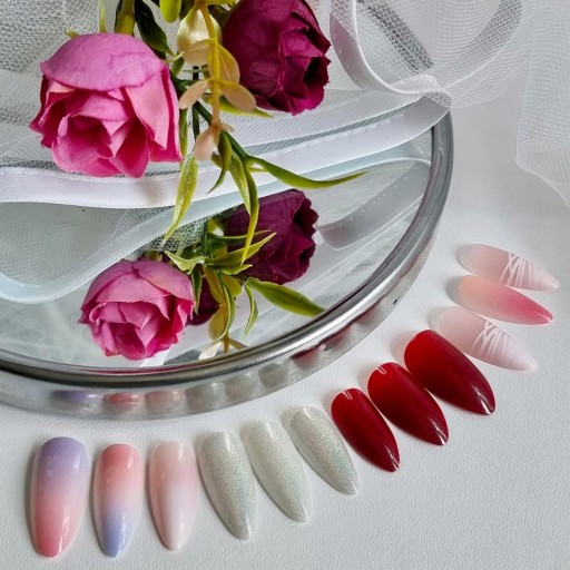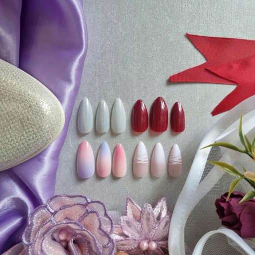 ✔️Wystarczy wymyć, wysuszyć swoje paznokcie, dopasować rozmiar, nałożyć klej do tipsów, przyłożyć, docisnąć delikatnie i gotowe.