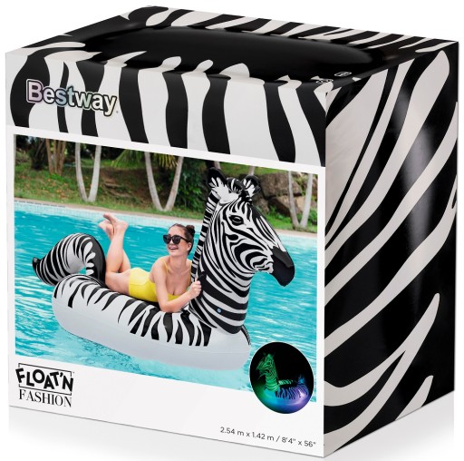 Majestatyczna i świetlista, gigantyczna dmuchana Zebra LED firmy Bestway okazuje się być praktycznym i zabawnym towarzyszem pływania, który ujawnia swoją głęboką naturę w nocy, oświetlając basen wielokolorowym zintegrowanym oświetleniem LED.