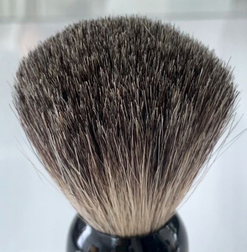 Wykonany ręcznie z naturalnego włosia borsuka, które jest najszlachetniejszym dostępnym naturalnym włosiem wykorzystywanym w produktach do golenia. Włosie pure badger jest bardzo delikatne, a przy tym bardzo sprężyste i wytrzymałe. Dzięki niemu pędzel pozwala wytworzyć gęstą pianę z mydła.