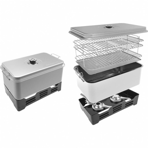 ➡️ Solidna i przemyślana konstrukcja sprawia, że produkt jest niezwykle wytrzymały i łatwo można utrzymać go w czystości. Dwa palniki zasilane paliwem żelowym pozwalają na wędzenie bez dostępu do gazu czy prądu. Wędzenie polega na podgrzewaniu od spodu zrębków wędzarniczych umieszczanych na dnie wędzarni, w efekcie czego wytwarza się dym.