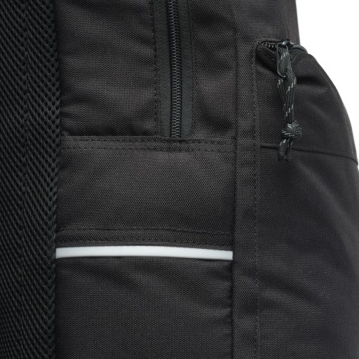 Ten solidny i elegancki czarny (Charcoal) plecak wykonany jest w 100 proc. z poliestru pochodzącego z recyklingu i wyściełany jest niebieską (Fjord Blue) poliestrową tkaniną także z recyklingu. Po zewnętrznej stronie mieści się duża wyściełana kieszeń na laptop, bezpiecznie zamykana na zamek, ozdobiona odblaskowym logo Volvo. Z boku umieszczono także zamykaną na zamek kieszeń mieszczącą butelkę z wodą. W środku są dwie kieszenie otwarte i jedna zamykana na zamek. Regulowane pasy naramienne mają praktyczne dodatkowe kółka i elementy odblaskowe, a siateczkowa tkanina od strony pleców zapewnia wentylację i odprowadzanie potu.