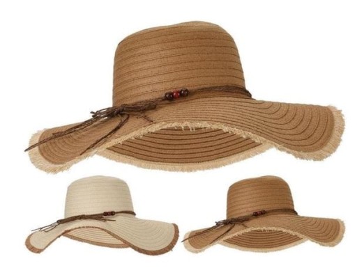 Piękny damski kapelusz przeciwsłoneczny ze wstążką i koralikami.