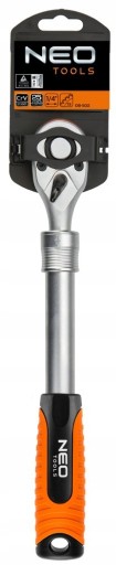 Grzechotka teleskopowa NEO z korpusem ze stali chromowo-wanadowej, wykonana zgodnie z normą DIN 3122. 72-zębowy mechanizm zapadkowy umożliwia precyzyjną pracę, wykonany jest z wyjątkowo trwałej stali chromowo-molibdenowej, przedłużającej żywotność narzędzia. Ergonomiczny uchwyt dwumateriałowy poprawia komfort pracy. Jakość narzędzia potwierdzona certyfikatem TÜV i 25-letnią gwarancją producenta. Marka NEO spełnia oczekiwania profesjonalistów.