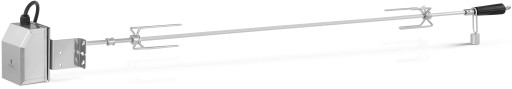 Z mocą 4 W rożen elektryczny obraca kurczaka lub inną żywność, aby piec równomiernie ze wszystkich stron. Sprzęt wytwarza 2 obr./min, a silnik jest zasilany napięciem 230 V. Dzięki długości kabla 1,3 m rożen elektryczny można elastycznie umieścić w kuchni.