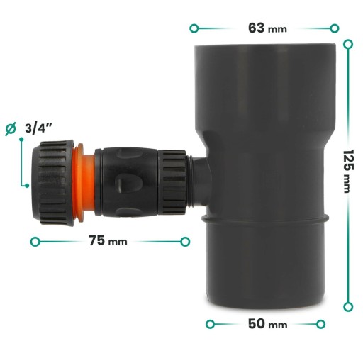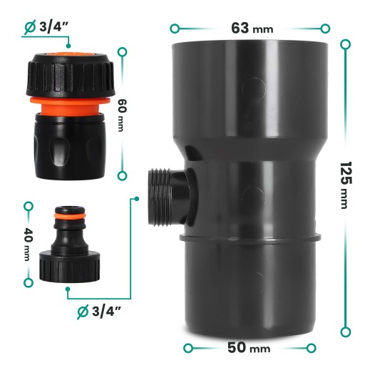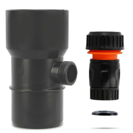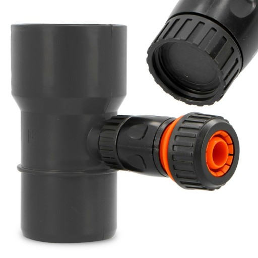 Odzyskiwacz wody deszczowej 63 mm x 3/4'' GZ grafitowy z przyłączem pod szybkozłączke 3/4'' GW x SZ i szybkozłączka 3/4'' W x SZ