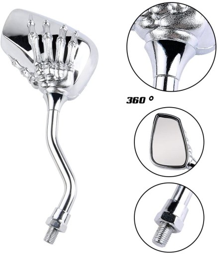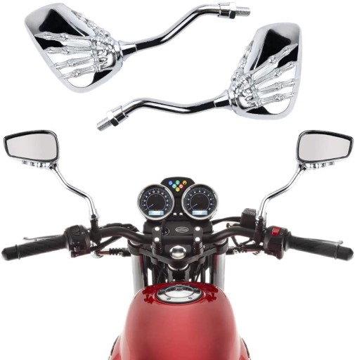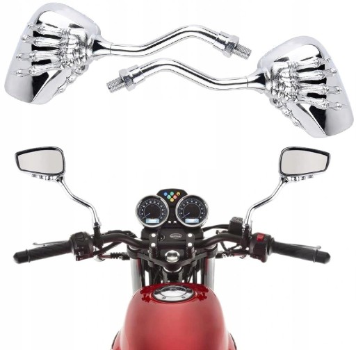 ✅Komplet lusterek chromowanych z motywem ręki do motorowerów, oraz motocykli