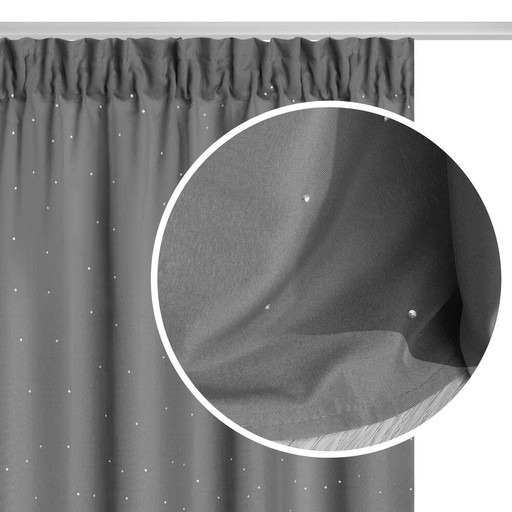 Zasłona doskonale wpasuje się do wnętrz w stylu glamour lub nowojorskim. Na całej powierzchni posiada efektowne zdobienia kryształkami a'la swarovski, które przepięknie mienią się na słońcu.