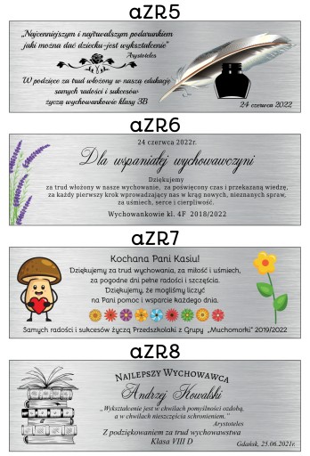 Projekty na tabliczkę do wyboru (można skorzystać z naszych propozycji lub podać nam swój własny, indywidualny tekst w komentarzu po dodaniu produktu do koszyka)