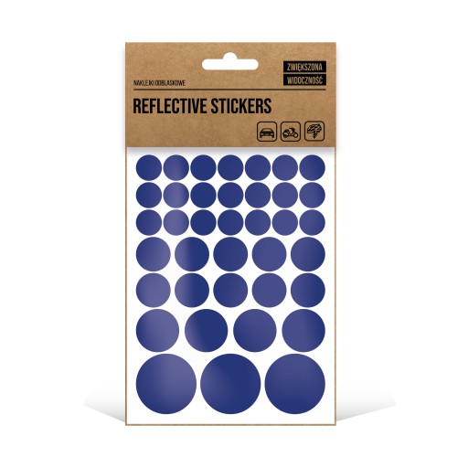 NAKLEJKI ODBLASKOWE OKRĄGŁE 38 SZT NIEBIESKIE
