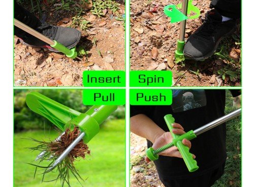 ✅Skieruj narzędzie do usuwania korzeni na chwasty, zacznij od pozycji pionowej, włóż stalowy pazur do środka chwastów, nadepnij na nie bez wysiłku stopą, a następnie obróć uchwyt, aby go wyciągnąć, a następnie pociągnij w dół górny uchwyt, aby poluzować roślinę. To takie proste, aby trwale usunąć chwasty!