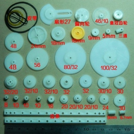 Zestaw 34 kół zębatych i zębatek z tworzywa - do budowy mechaniki robotów