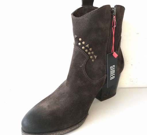 Simen 2083A,kowbojek damski z najnowszej kolekcji,wykonany z naturalnej skóry welurowej,wewnątrz wełniane ocieplenie,kolor ciemny brąz,zapinany na zamek,z metalowymi dodatkami z przodu cholewki,6- cm kowbojski malowany obcas,hit sezonu.