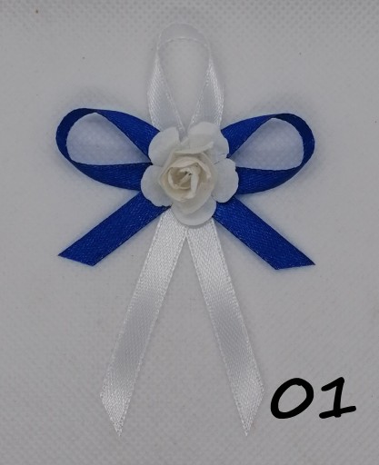 Przypinki wykonane są ręczne, ze starannością i dbałością o szczegóły. Ich wielkość to 8 cm/ 6 cm. Użyto 0,6 mm wstążki. Każda przypinka posiada biały papierowy kwiatek. Do każdej wpięta jest szpilka.