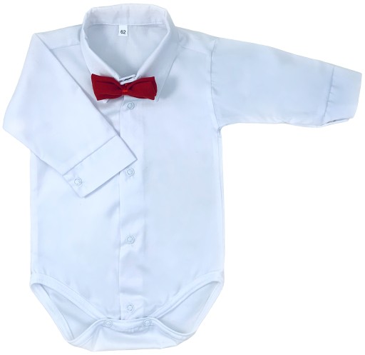 Wizytowe koszulo-body z kołnierzykiem dla chłopczyka. Długie rękawy z mankietami zapinanymi na napy.