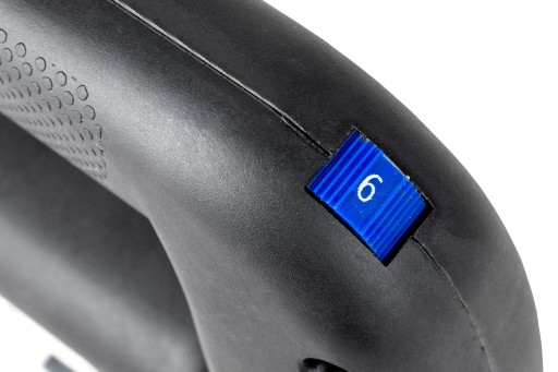 W uchwycie umieszczone zostało pokrętło służące do płynnej regulacji obrotów urządzenia, pozwalające na dostosowanie go do własnych potrzeb oraz do rodzaju ciętego materiału.
