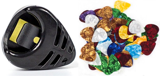 KOSTKA GITAROWA RÓŻNE KOLORY 10 SZT. + UCHWYT NA KOSTKI