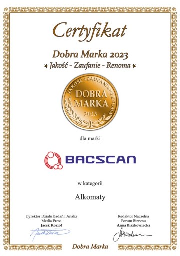 BACscan® to marka zaawansowanych technologicznie alkomatów, służących do pomiaru stężenia alkoholu we krwi na podstawie analizy wydychanego powietrza. Dzięki zastosowaniu technologii opartej na platynowym, elektrochemicznym sensorze oraz czujniku przepływu powietrza, urządzenia te są bezkonkurencyjne w dokładności i szybkości pomiarów. Alkomaty BACscan® charakteryzują się wysoką jakością wykonania, niezawodnością oraz niskim kosztem eksploatacji, dzięki czemu spełniają oczekiwania nawet najbardziej wymagających użytkowników.